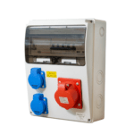 Csatlakodódoboz 22 kW-os hordozható töltőberendezéshez 1 db 32 Amperes 3 fázisú 5 pólusú aljzattal + 2 db 1 fázisú aljzattal komplett védelemmel (kismegszakítókal, A típusú áram-védőkapcsolóval és T2-T3 túlfeszültség levezetővel)